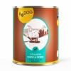 Sobald die Dose geöffnet wurde, sollte diese innerhalb von zwei Tagen aufgebraucht werden, da alle unsere Gerichte bewusst keine Konservierungsmittel enthalten. Die Aufbewahrung im Kühlschrank hilft, das Produkt möglichst frisch zu halten: unsere praktischen Schnappdeckel sind optimal, um den Geruch in der Dose zu belassen und das Produkt zu schützen. Füttern Sie aber das Gericht aber bitte nicht kalt, sondern leicht erwärmt (z.B. indem Sie etwas heißes Wasser darüber gießen). Das schmeckt nicht nur den Tieren besser, die Mahlzeit kann so auch leichter verdaut werden.